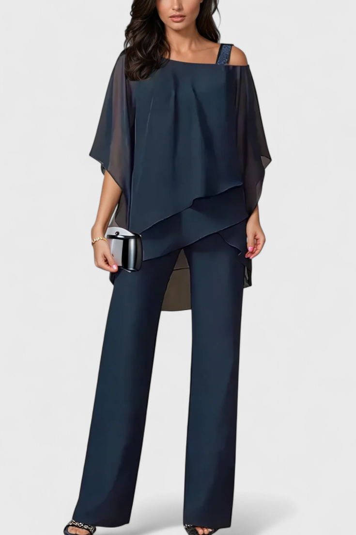 Kitty Conjunto de Dos Piezas con Hombros Descubiertos y Silueta Fluida